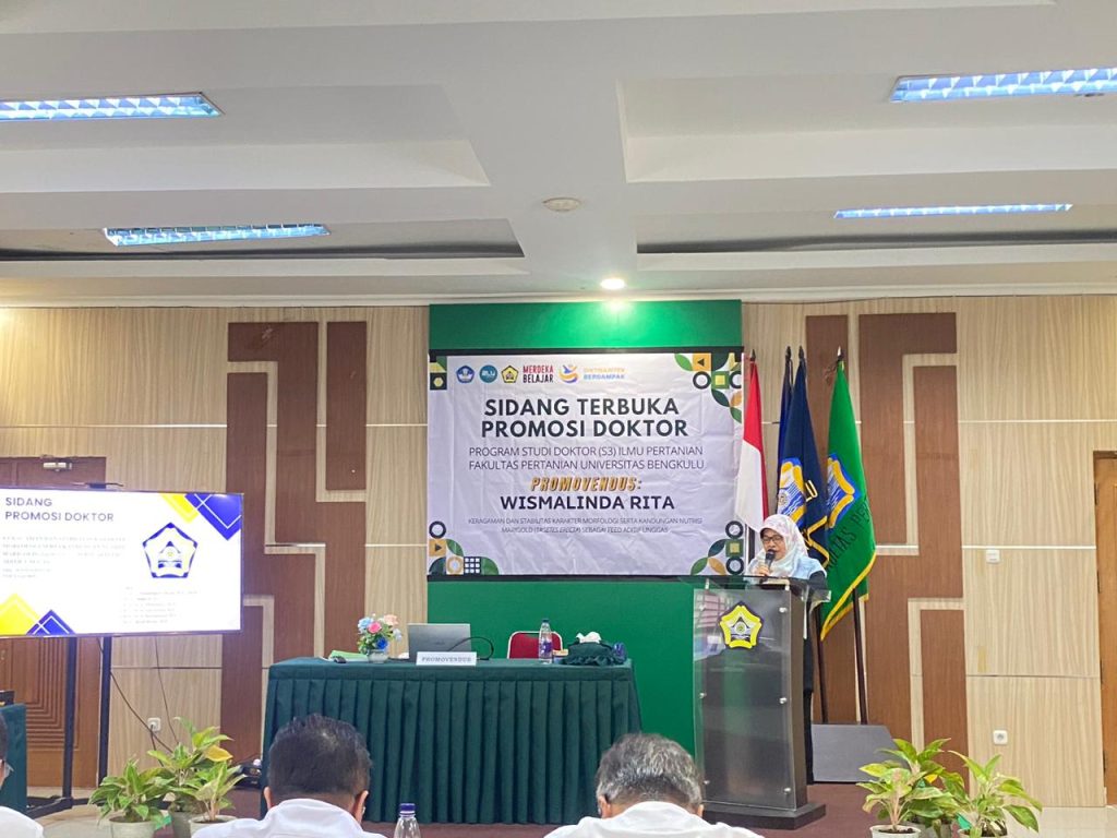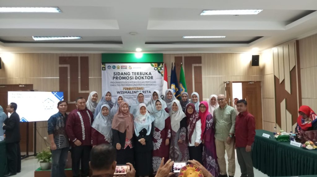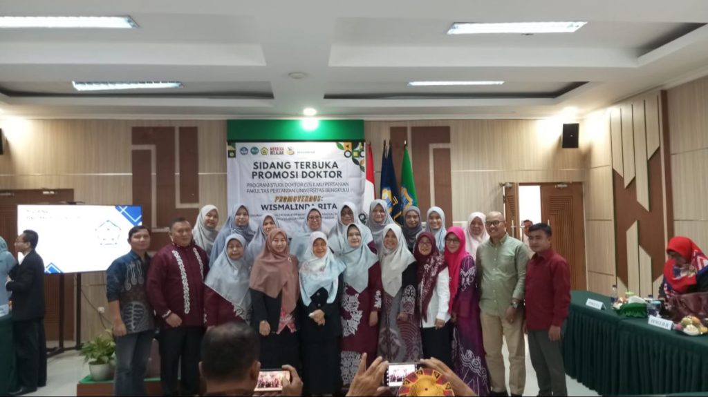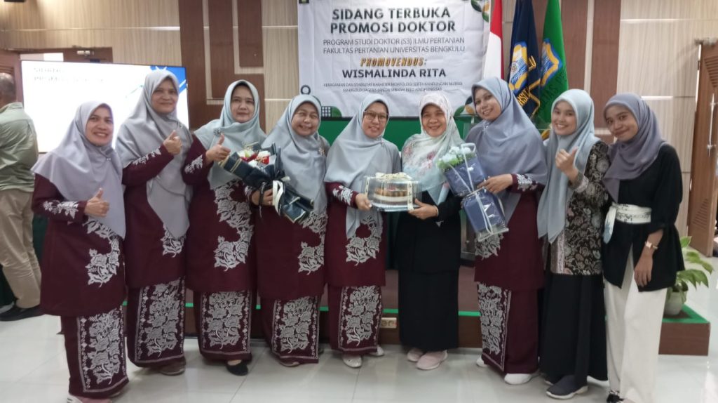 Dosen Prodi Peternakan Fakultas Pertanian dan Peternakan (FPP) Universitas Muhammadiyah Bengkulu (UMB), Wismalinda Rita, melaksanakan Ujian Disertasi Terbuka (12/01), bertempat di Ruang Rapat Dekanat Fakultas Pertanian Universitas Bengkulu (UNIB). Dalam ujian disertasi terbuka program Doktor Ilmu Pertanian Fakultas Pertanian UNIB tersebut, Wismalinda mempertahankan disertasi berjudul “Keragaman dan Stabilitas Karakter Morfologi Serta Kandungan Nutrisi Marigold (Tagetes erecta) sebagai Feed Aditif Unggas.”