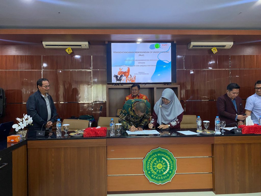 dalam kegiatan kerjasama ini dihadiri oleh Rektor Universitas Muhammadiyah Bengkulu, Dekan Fakultas Pertanian dan Peternakan dan Program Studi Peternakan, Agribisnis dan Agroteknologi.