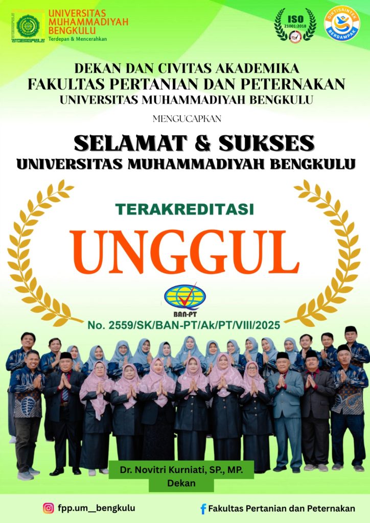 Selamat dan apresiasi yang setinggi-tingginya kepada Universitas Muhammadiyah Bengkulu atas keberhasilannya meraih Akreditasi Unggul dari Badan Akreditasi Nasional Perguruan Tinggi (BAN-PT).